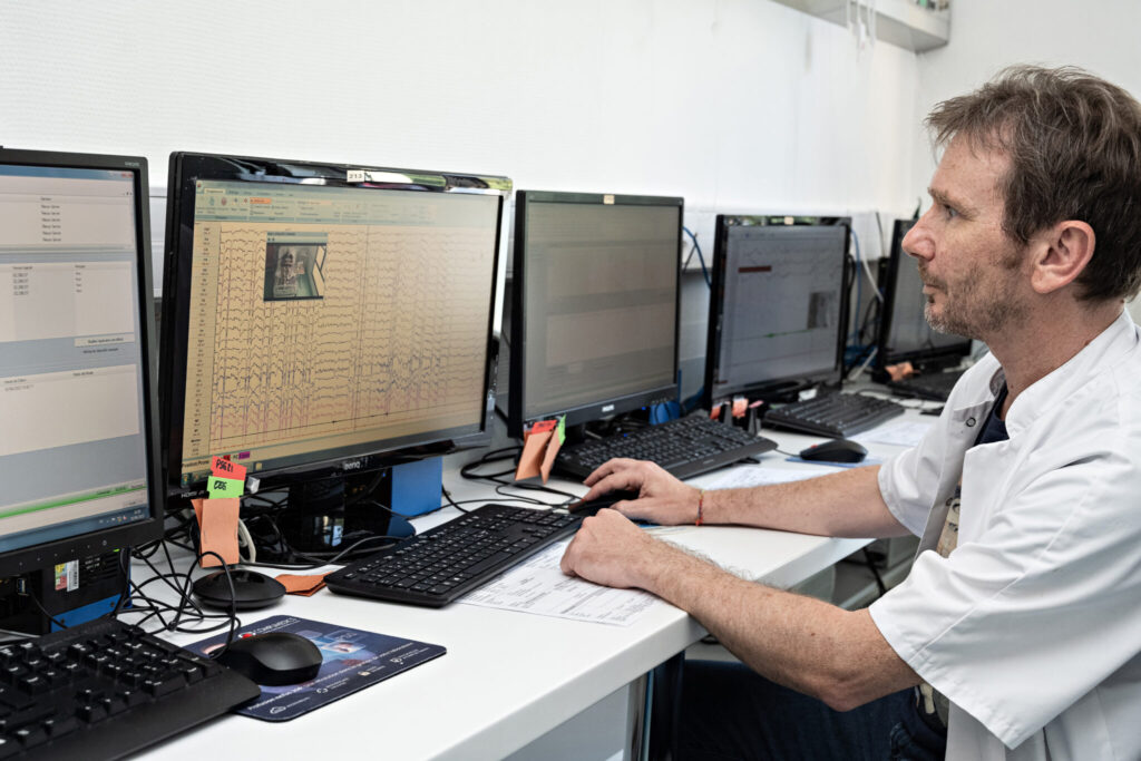 Les diagnostics et les soins sont réalisés dans huit chambres équipées de vidéopolysomnographes. Une activité d’électroencéphalographie est également présente dans le Centre, le matériel permettant la réalisation d’EEG complets de sieste et/ou de nuit. Cet appareillage permet ainsi de bien aborder les problématiques neurologiques du sommeil, en particulier chez les patients épileptiques.