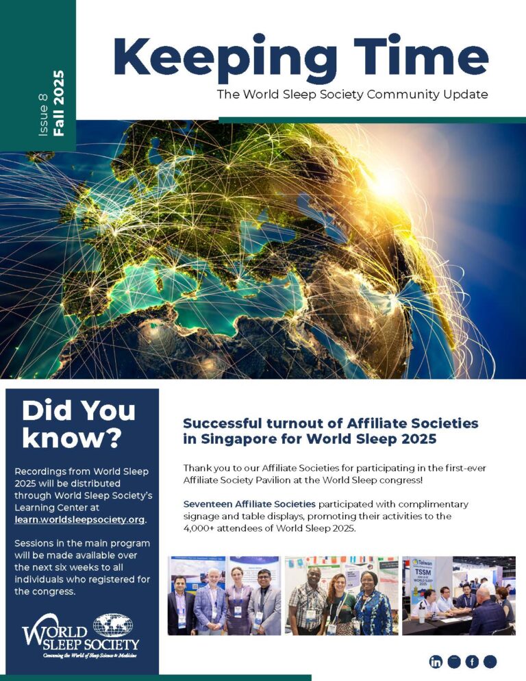 La World Sleep Society (WSS) a publié le 8ᵉ numéro de son bulletin trimestriel Keeping Time, destiné à ses sociétés affiliées, dont fait partie la SFRMS.
