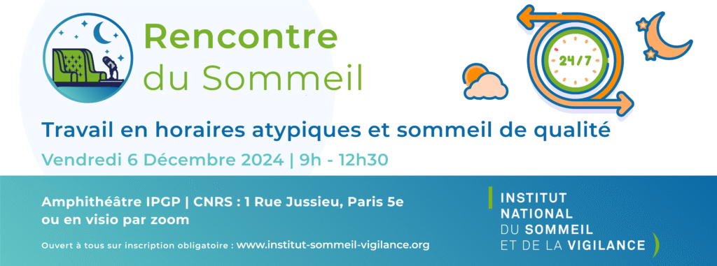 L’Institut National du Sommeil et de la Vigilance (INSV) organise le vendredi 6 décembre 2024 la 14ème rencontres du sommeil, portant sur « Travail en horaires atypiques et sommeil de qualité« .